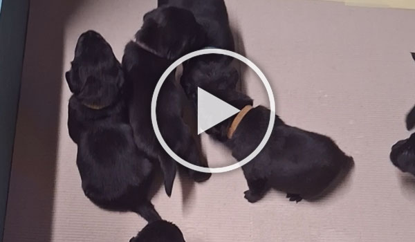 I nostri cuccioli nascono nel soggiorno di casa e rimangono nella loro “cassa parto” insieme alla mamma fino ai 40 giorni circa, continuamente monitorati e controllati.